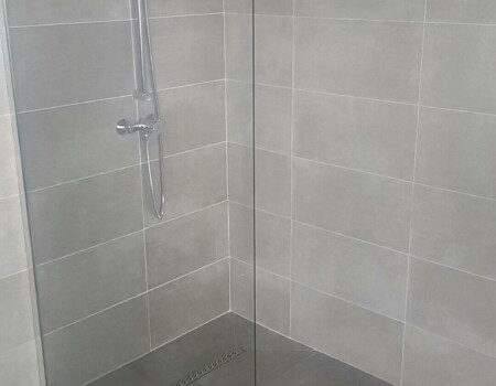 Fin des travaux transformation d’une chambre simple en suite parentale, douche italienne, robinetterie encastrable, lavabo ..